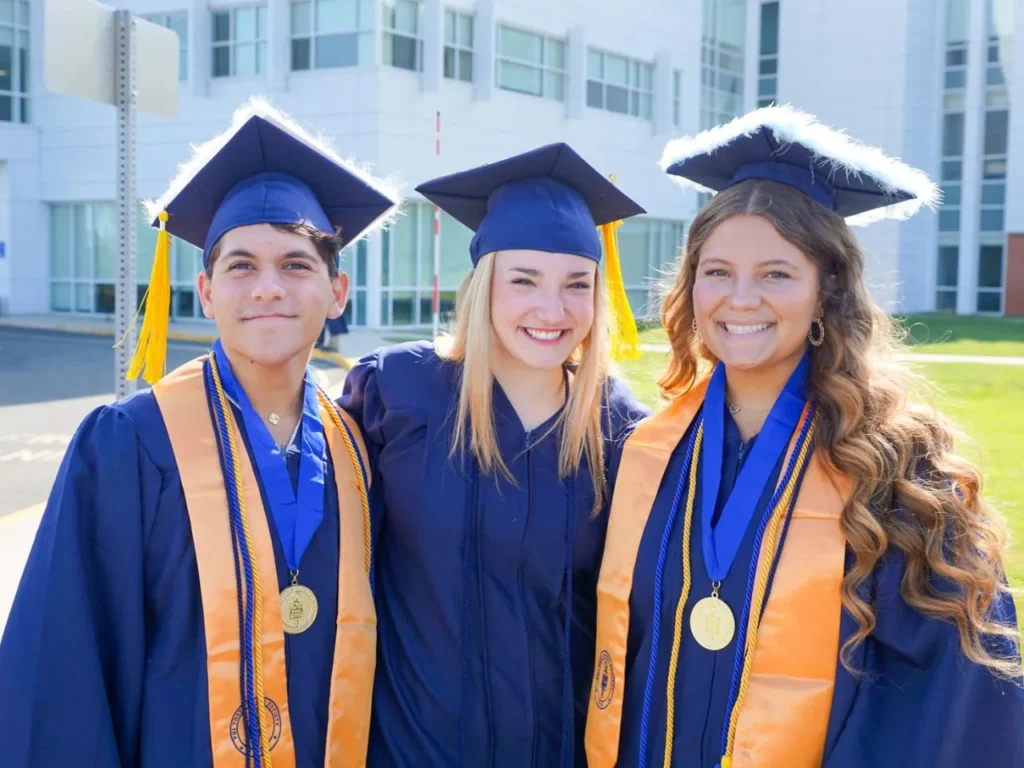 three students at graduation